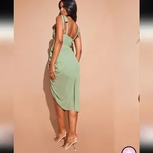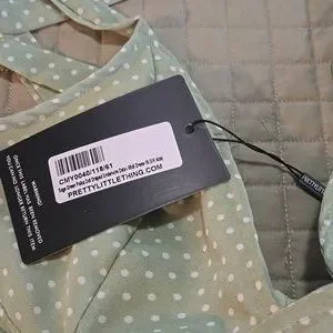 PrettyLittleThing Green White Polka Dot Midi Dress NWT Ladies Size 12 Event
