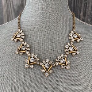 Stunning J. Crew Art Deco crystal statement necklace, featuring gold-toned metal and multi-shaped rhinestone clusters