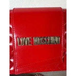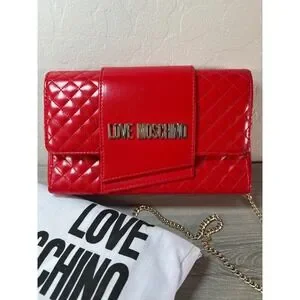 Love Moschino Red Quilted Crossbody Bag Gold Chain Strap Evening Clutch