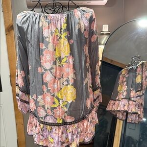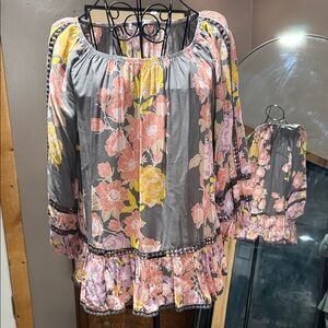 Fever Gray Blouse with Pink and Yellow Floral Design
