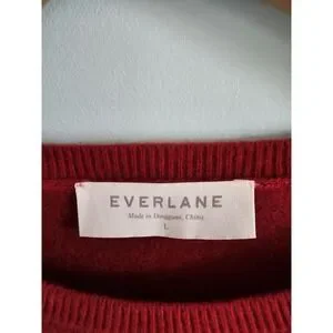 The Everlane Maroon 100% Cashmere Luxury Casual Crewneck Sweater in size Large is a stylish and cozy addition to any woman's wardrobe. Made from high-quality, tight-knit cashmere fabric, this sweater features a relaxed fit and a classic crew neck design. Perfect for casual occasions in the winter and fall seasons, this sweater exudes a touch of luxury with its solid red color and high-end brand. For a chic and comfortable look, simply hand wash this sweater to keep it looking its best.