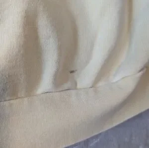 Good used condition, one very small stain noticed on lower back near hem, shown in photos and barely noticeable on. Have not attempted to remove stain. Please review photos carefully for details of condition.