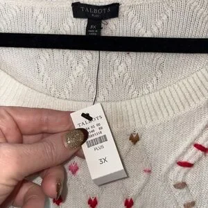 Talbots Whipstitch Hearts Cable Knit Sweater Ivory NWT 3X