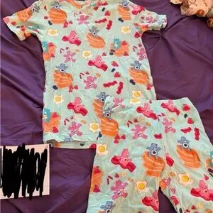 Birdie Bean x Care Bears Breakfast Teal Bamboo Pajama Set (Bacon Eggs Pancakes)