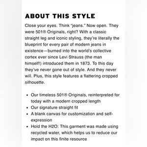 NWT Levi’s 501 high rise Original Cropped size 28x26 color Ojai Luxor Light Wash