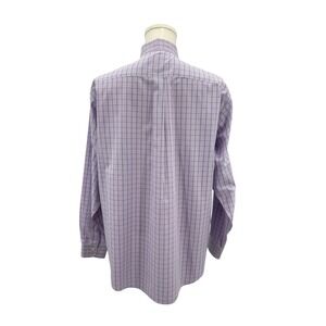 Brooks Brothers men's long sleeve button-down dress shirt in purple and lavender mini check with subtle overcheck pattern.