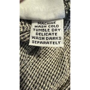 Fabric content tag is not present. Care label indicates machine wash.
