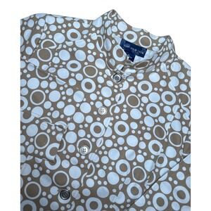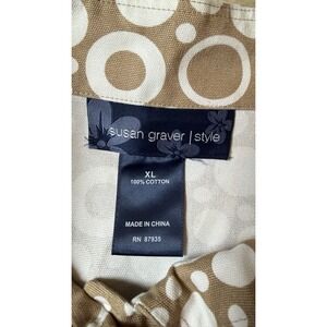 Susan Graver Style Women's XL Tan White Circle Print Cotton Blazer Jacket Cotton
