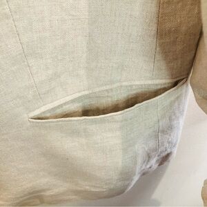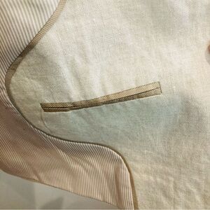 ZARA Basic Sz 14 Linen Pinstripe Lined Pockets Collarless Back Slit Blazer Jacket. Gorgeous to dress up or down. The fabric tag is missing Similar to what Kate Middleton wore (see pic for illustration purposes only). Lovely structure. Dress up or down. Vanilla girl. Boogie beige. Ecru cream. Timeless style.