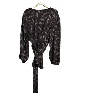 LOFT Plus Size 22 wrap blouse. Grey with leaf print. Excellent Condition.