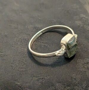 This elegant silver natural stone ring features a captivating labradorite stone, perfect for adding a touch of sophistication to any outfit.