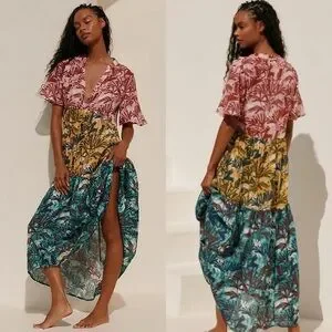 Anthropologie The Kallie Flowy Relaxed Fit Maxi Dress