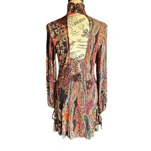 Free People All Dolled Up Paisley Boho High Neck Long Sleeve Mini Dress | S
