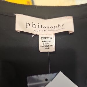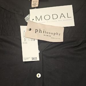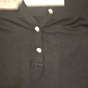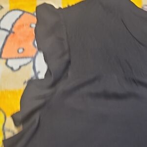 Chic black blouse with ruffle sleeves. Button detail adds elegance. Ideal for versatile styling.