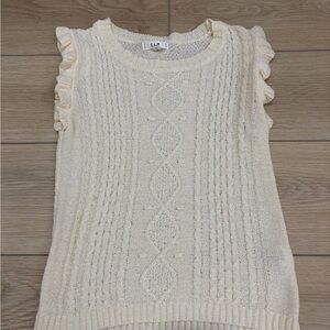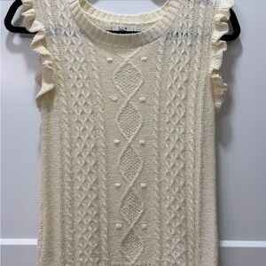 E & M Cozy Cream Knit Sleeveless Ruffle Top. Size M