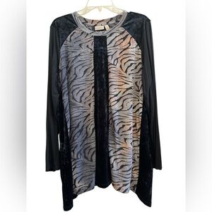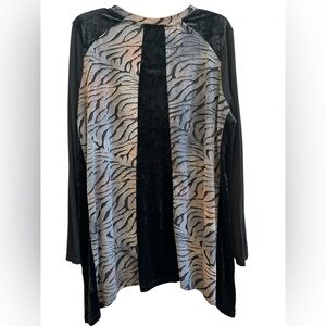 LOGO Lori Goldstein Velvet Panel Zebra Print Tunic Top XL Lagenlook Boho Artsy