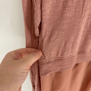 LOGO By Lori Goldstein Women's Chiffon Trim Slub Knit Cardigan Pink Small