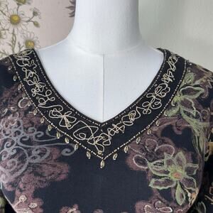 Black/multicolor, floral, beaded, embroidered, sequin, v neck, 3/4 sleeve, cotton