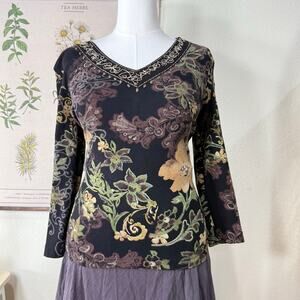 90s Y2k Floral Embroidered Beaded Top Fairy Grunge Forest Whimsigoth Witchy S M