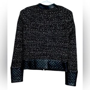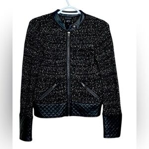 Club Monaco Black & White Zip Up Jacket w Pockets Wool Blend w Vegan Leather