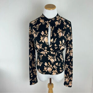 Free People Dinner Party Floral Printed Top Cutout / Black Combo Size M