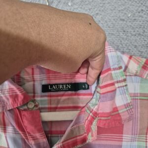 Lauren Ralph Lauren Women's Pink Plaid Button Up Shorts Cotton Pj Set Large
