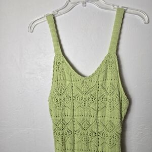 Freshman 1996 Lime Green Crochet Knit Boho V Neck Maxi Tank Dress Semi Sheer M