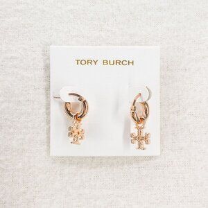 Tory Burch Kira Logo Drop Huggie Hoop Earrings Rose Gold OS