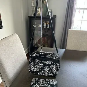 Vera Bradley Black White Floral Quilted Crossbody Bag and Wallet