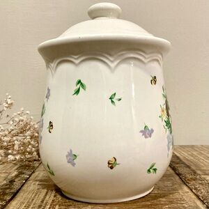 9” Tall Vintage Ceramic Canister Floral Kitchen Storage Cottagecore Flowers