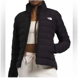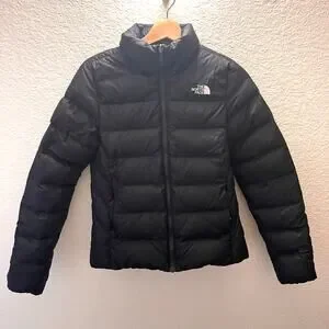 The North Face Women’s Minoqua Down Jacket (Style NF0A55XB) in classic black. Lightweight puffer with 550-fill down insulation, water-repellent finish, full zip, and zip hand pockets—perfect for travel, hiking, and gorpcore everyday wear.