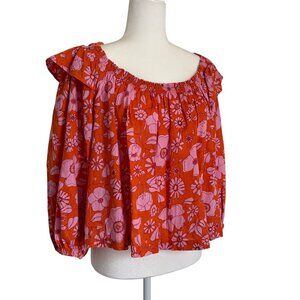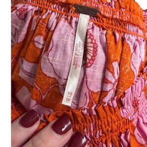 Free People Miss Daisy floral printed pull on smock blouse in Orange and Pink