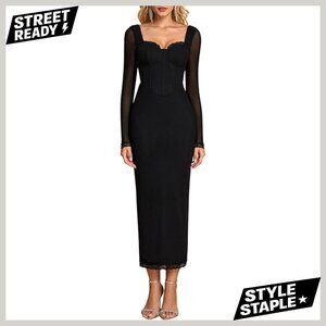 Long Sleeve Lace Corset Bodycon Dress with Back Slit for Formal Occasions