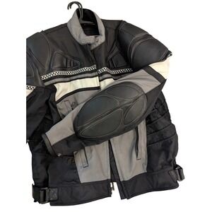 Firstgear Mens XL Motorcycle Jacket Leather Mesh Padded Racing Black Grey White