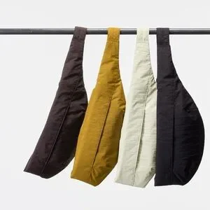 UNIQLO U cream sling bag with a minimalist design. Lightweight and comfortable for everyday wear. Features an adjustable strap for a secure fit. Neutral beige color pairs easily with any outfit.