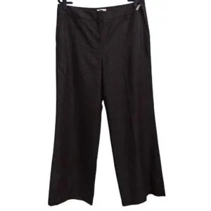 LOFT Ann Black And White Pinstriped Flat Front Wide Legged Wool Blend Trousers