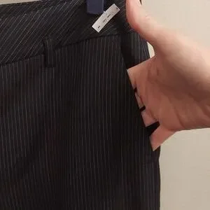 LOFT Ann Black And White Pinstriped Flat Front Wide Legged Wool Blend Trousers in brand new condition