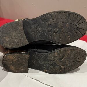Vince Camuto Black Leather Moto Boots with Gold Buckles