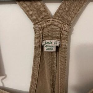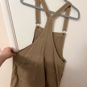 Stylish tan short overalls with adjustable straps. Perfect for casual wear. So soft and high comfy, sad they don’t fit anymore.