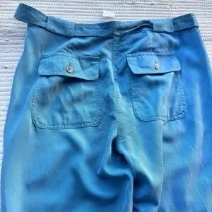 These pants feature large front patch pockets, seaming along the legs for visual interest, and a tapered leg with zipper detail at the hem and elastic cuffs. Lightweight Lyocell makes them breathable and flowy while still holding their shape; perfect for travel, casual days, or dressed up with a blouse and sandals. New with tag attached, no flaws or signs of wear.