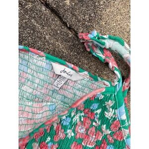 Joules Girls Green Floral Smocked Midi Dress Tie Strap Ruffle Hem Size 10 140cm