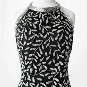 Vintage Y2K Black White Gray Floral Beaded Maxi Bodycon Formal Dress M