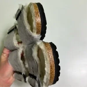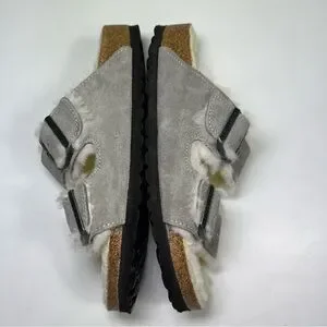 Birkenstock Arizona Shearling Stone Coin Fur Lined Slide Sandals size 38 (7-7.5)