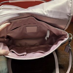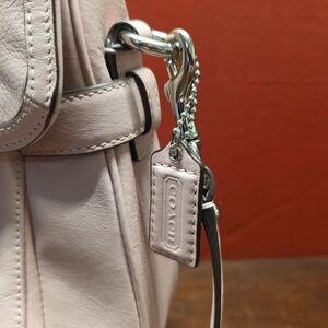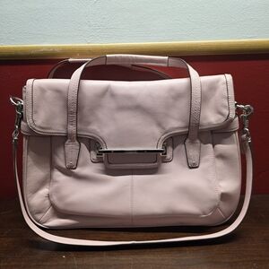 Stylish Coach satchel in light pink leather. Perfect for any occasion.