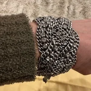 This elegant silver chain bracelet is a perfect addition to any jewelry collection. Its intricate design adds a touch of sophistication to any outfit.