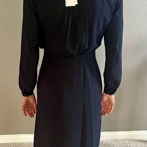Chic black dress with elegant long sleeves. Perfect for versatile styling. Timeless Tory Burch design.