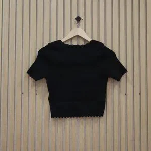MINKPINK Laura Scallop Knit Tee Black