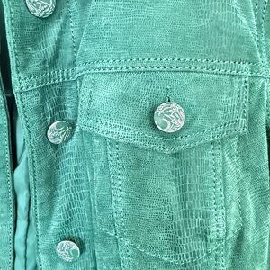 Fantastic BLINK Green Suede jacket with crocodile(?) type design. This jacket is perfection for Spring! SZ M