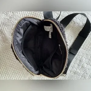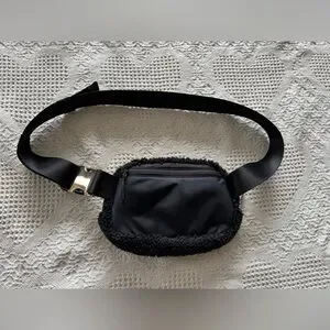 Lululemon Everywhere Black Fleece Belt Bag With Gold Hardware