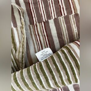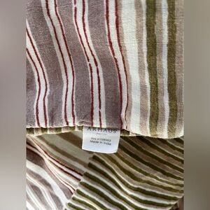 excellent used condition / 100% linen / fun multicolor boho print with cream, purples, greens, and mauve / measures 27”x76” / please note stock photo features a different pattern from Arhaus but same style product